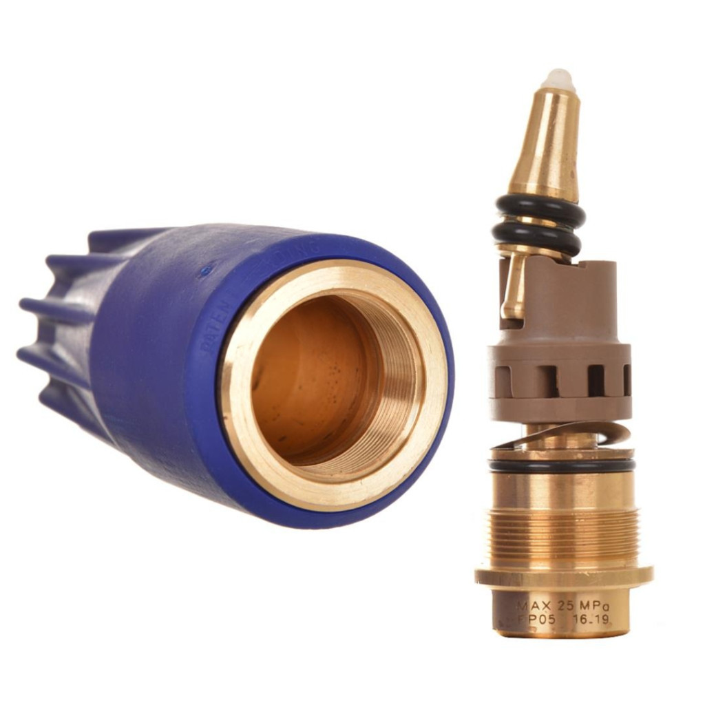 Sistemul intern patentat cu arc asigură contactul constant între duza ceramică și scaun, prevenind vibrațiile și prelungind durata de viață a componentelor.