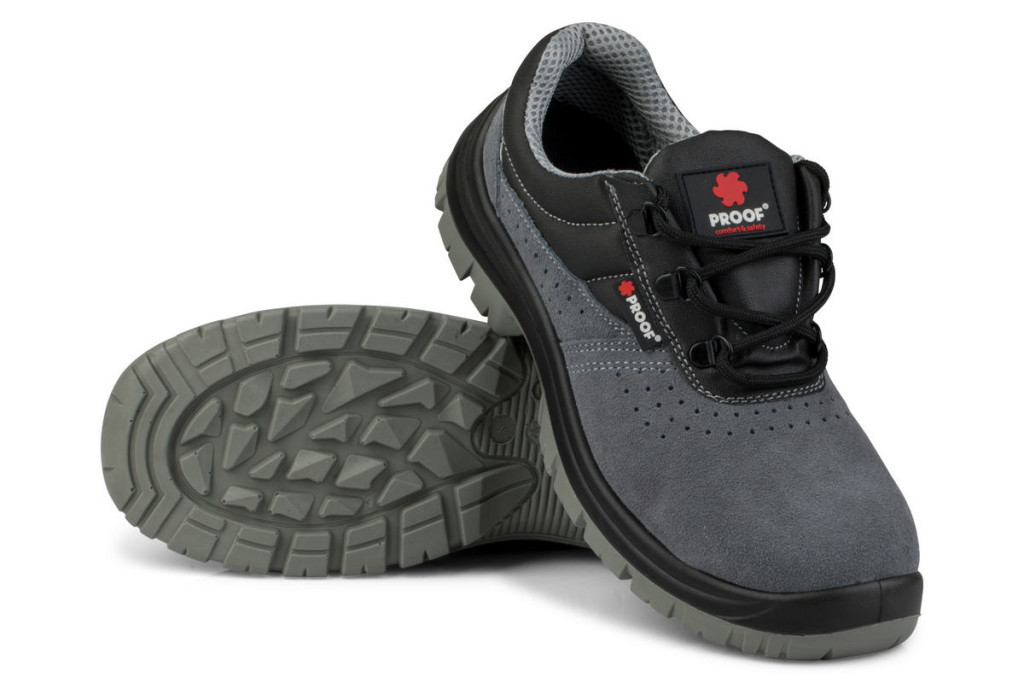 Pantofii de Protecție KAPS3 Velur S1P - Piele Velur Gri, Talpă Poliuretan, Bombeu Metalic 200 J, Mărimea 46 reprezintă combinația perfectă între protecție și confort. Fabricată din piele velur naturală, material respirabil cu grosime de 1.6 – 1.8 mm. Talpa din categoria SRC rezistentă la uzură, alunecări, crăpături și căldură. Pantofii moderni sunt echipați cu tălpici perforați și căptușeală interioară pentru o ventilație optimă și eliminarea eficientă a transpirației neplăcute.